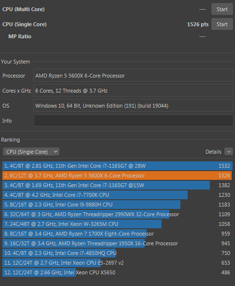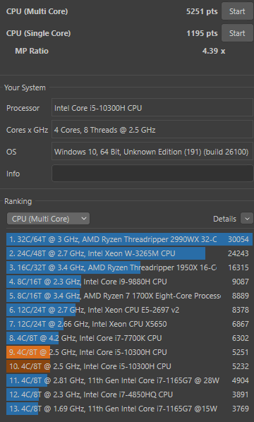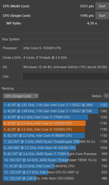 | 5 | 1195 | xodus | Core i5 10300H |