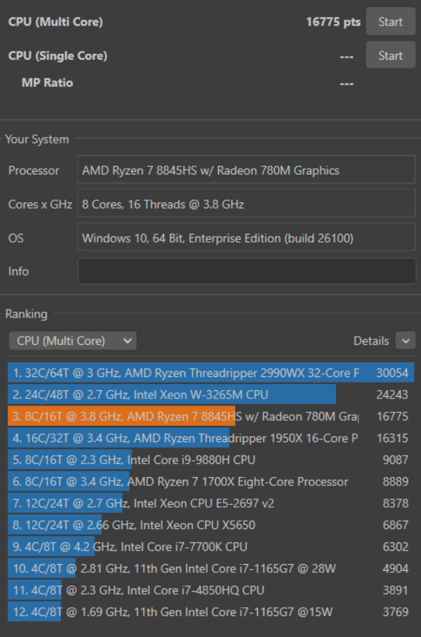 | 1 | 16775 | amrls | Ryzen 7 8845HS |
