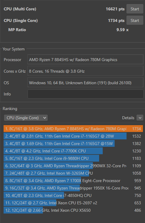 | 1 | 1734 | amrls | Ryzen 7 8845HS |